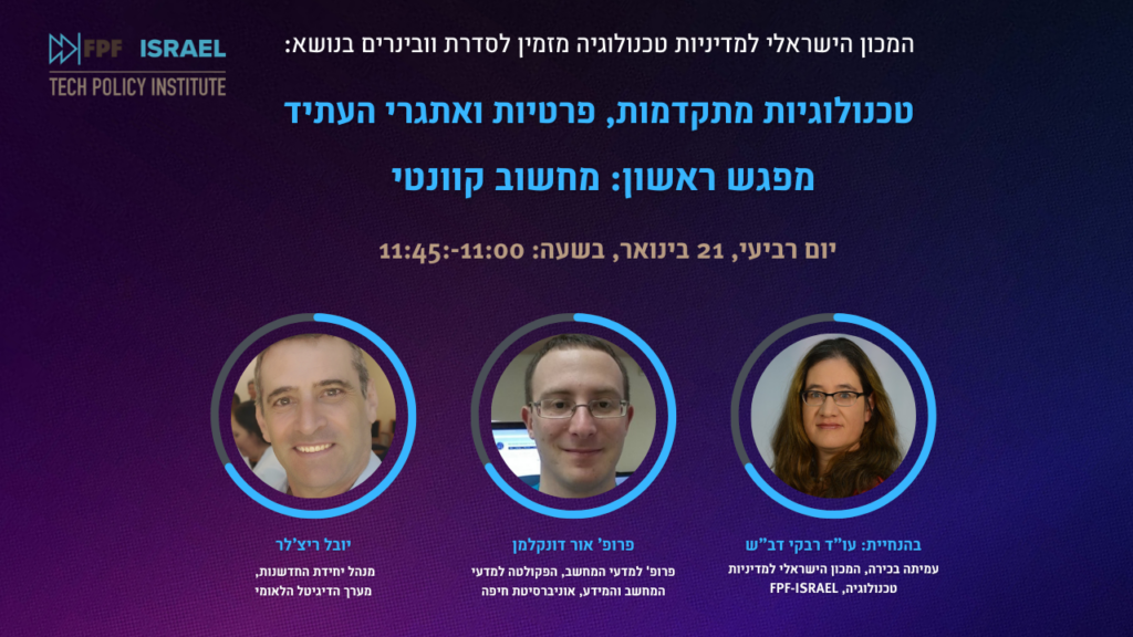 ב 2 במאי קיים המכון הישראלי למדיניות טכנולוגיה וובינר בנושא: עמידה על הזכות לפרטיות: מה ניתן ללמוד מעשור של הליכים אזרחיים בתחום הפרטיות בהנחיית: עו”ד נועה דיאמונד מהפקולטה למשפטים באוניברסיטת תל אביב